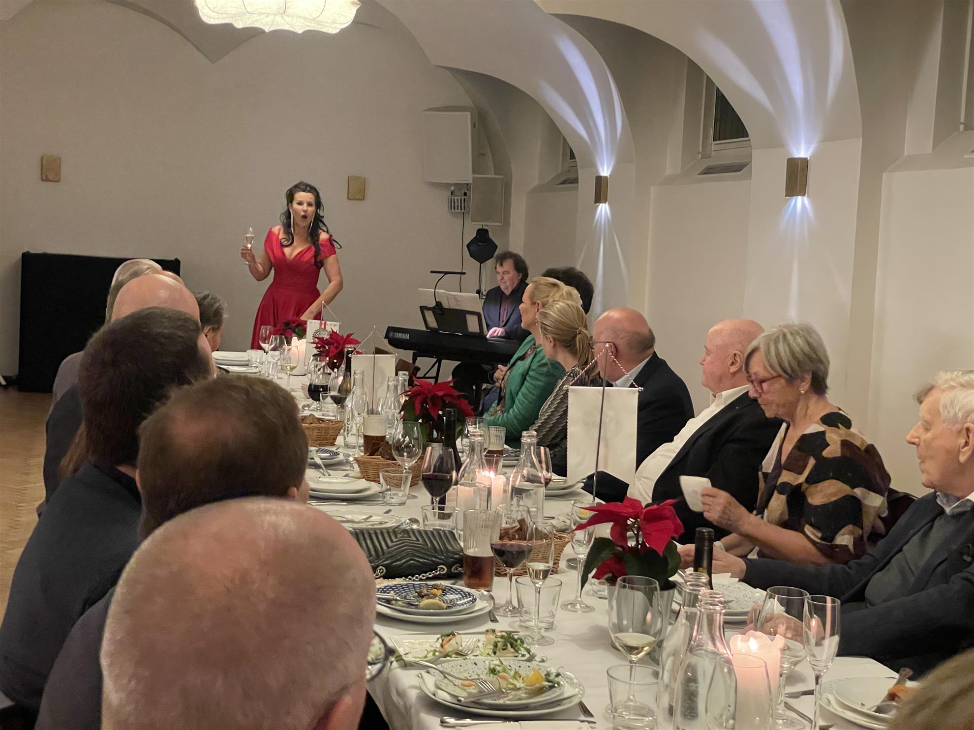 Festlig Julemiddag på Frederiksberg RC den 9.12 2025. Två medlemmar deltog i vår vänklubbs julemiddag på Frederiksberg Rådhuskällare. Efter en timmes härligt mingel åt vi en läcker välbalanserad trerätters julmiddag. Under middagen fick vi också njuta av sopran Cecilia Lindwall och verk av bland annat Puccini. Tack för en härlig afton och fin gemenskap.